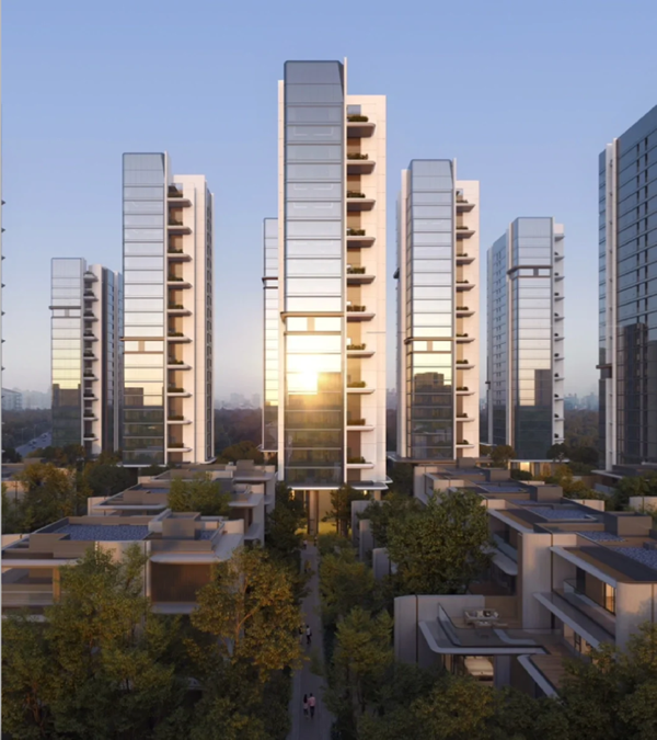 绿城长沙凤起麓鸣:2024年长沙地王,line+(朱培栋)建筑方案合作,异形幕墙设计展现独特美学;